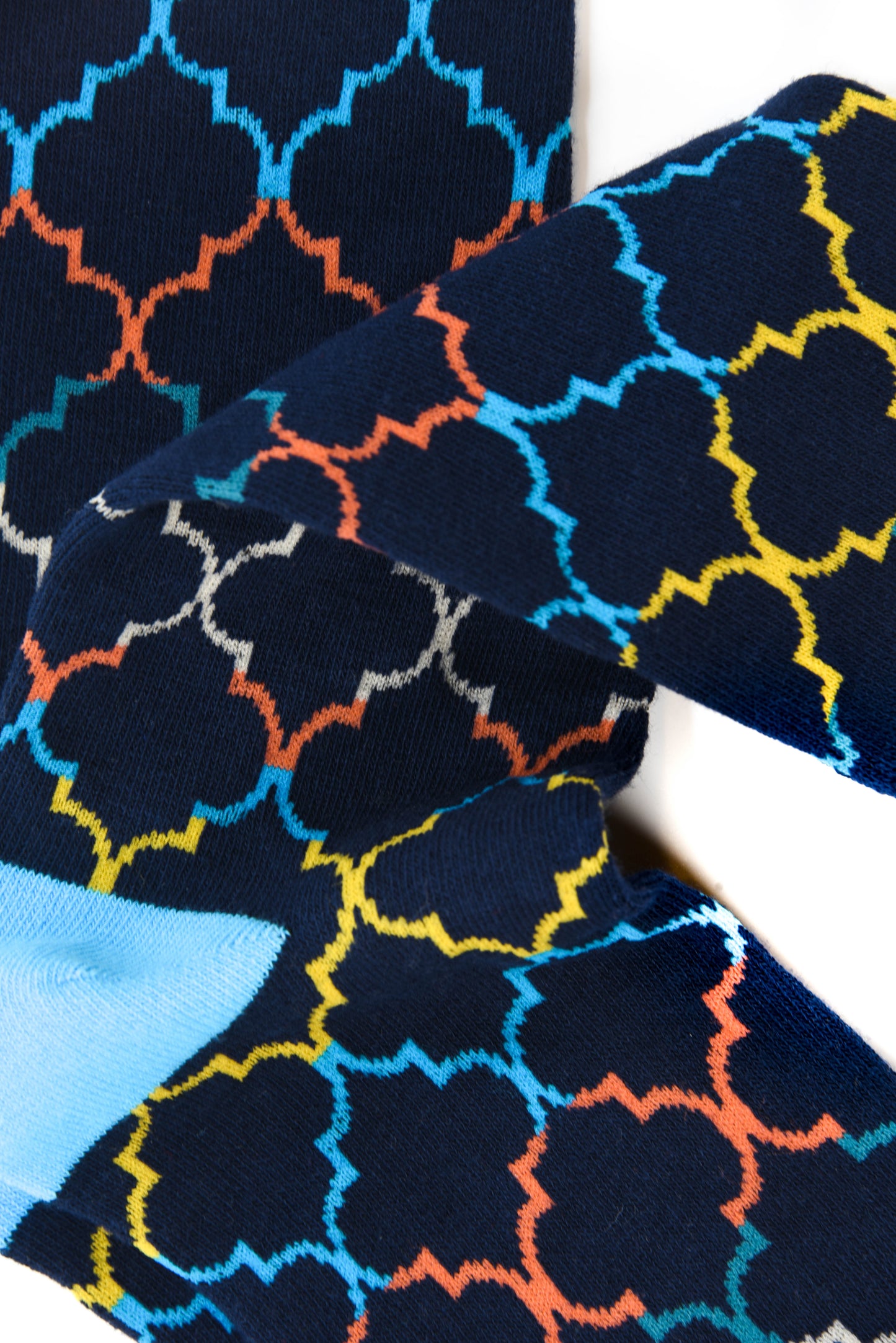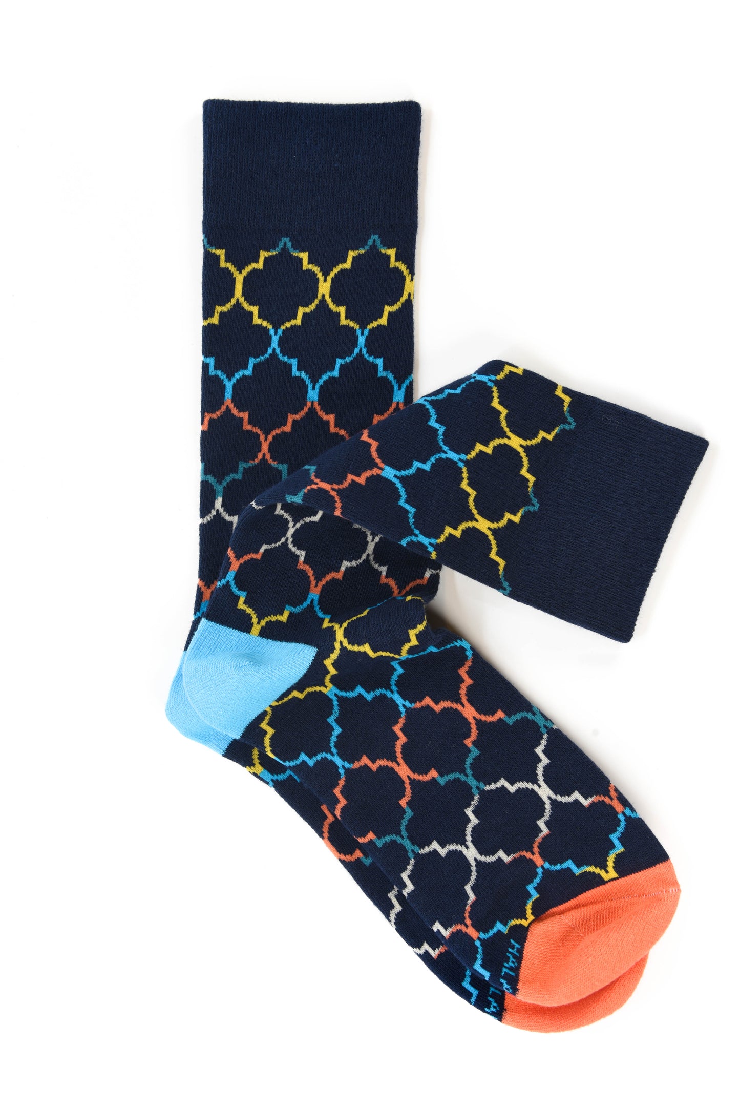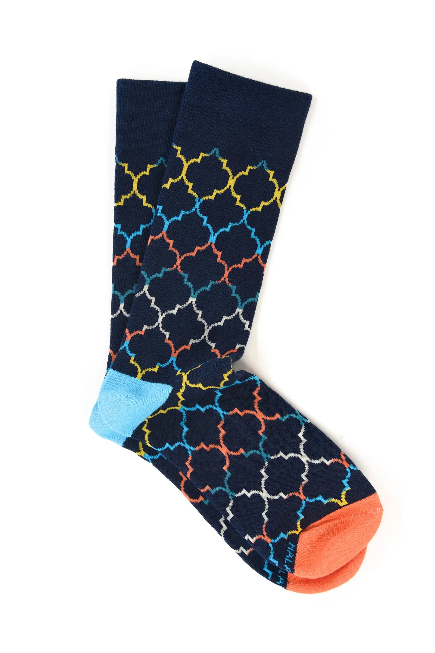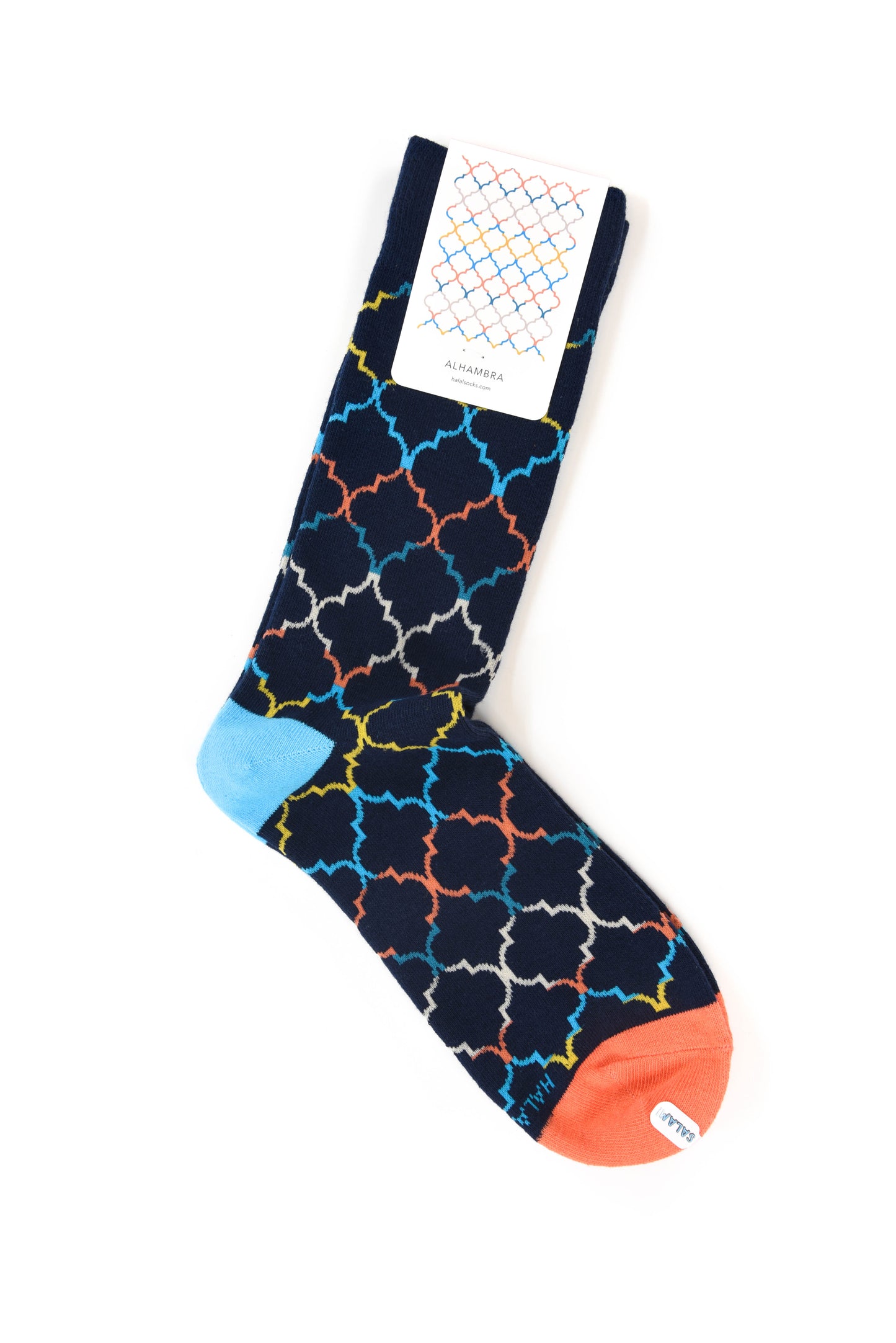 Our Alhambra pair put a fun twist on the classic lantern mosaic design. The bold Middle Eastern pattern on this deep navy pair promises to elevate everyday ensembles.
