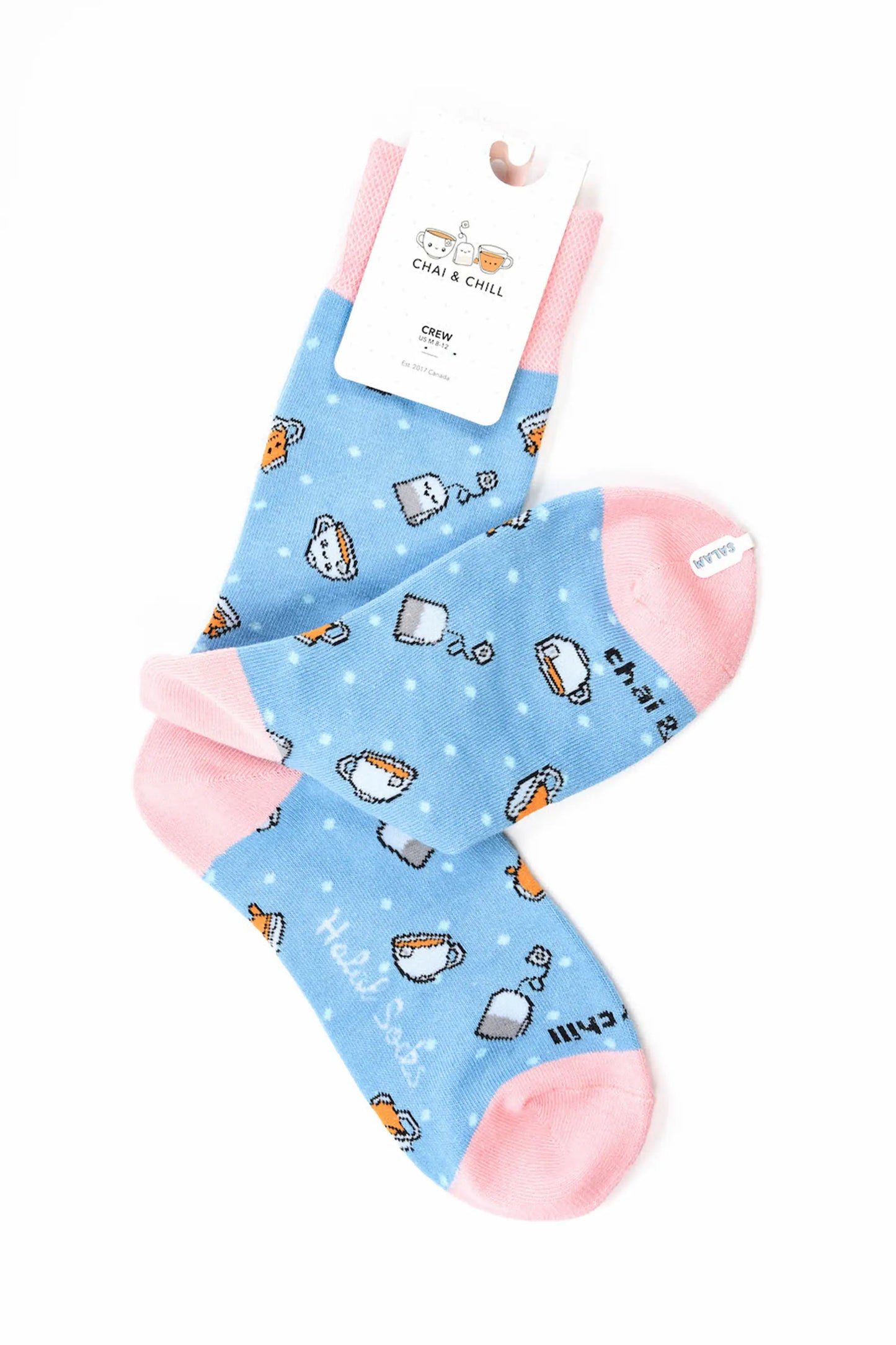 Our "Chai & Chill" themed socks are the perfect companions for those cozy moments when all you crave is a warm cup of chai and relaxation. It's time to celebrate your passion for chai with style and comfort. So, grab your mug, kick up your feet, and let these socks remind you to take a moment to savor life, one chai sip at a time.